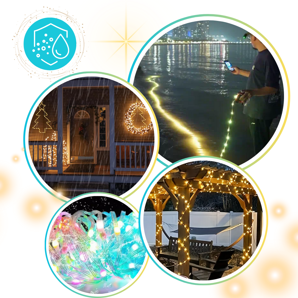 Transform any space with 210 Music Sync USB LED Lights! Featuring Bluetooth control, music sync, 210 light modes, and waterproof durability, these versatile USB-powered lights create stunning ambiance indoors or out.