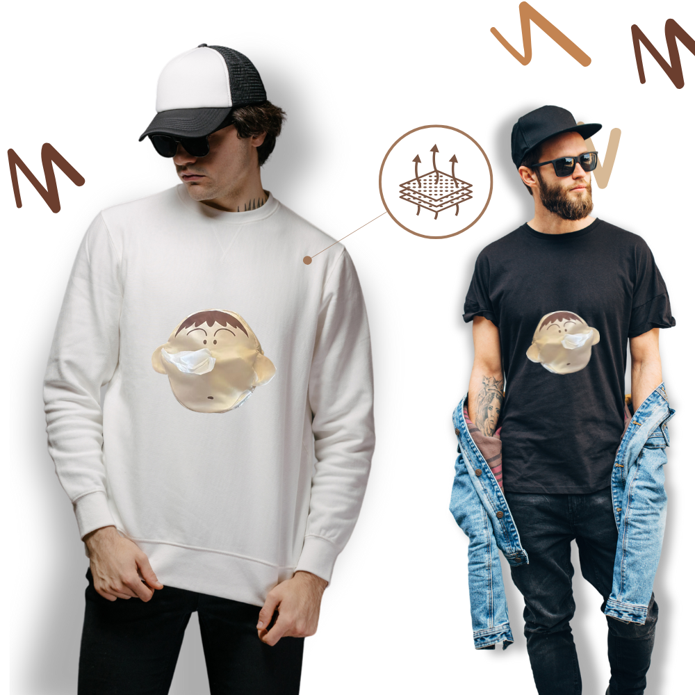 Whether you opt for the T-shirt or sweatshirt, both designs are made with comfort in mind. The T-shirt's breathable fabric ensures you stay cool, even on warm days, while the sweatshirt provides a cozy feel for chillier weather. No matter the season, you can count on these pieces to keep you comfortable while still looking great. They’re perfect for layering or wearing on their own, offering a stylish yet practical solution for any weather.