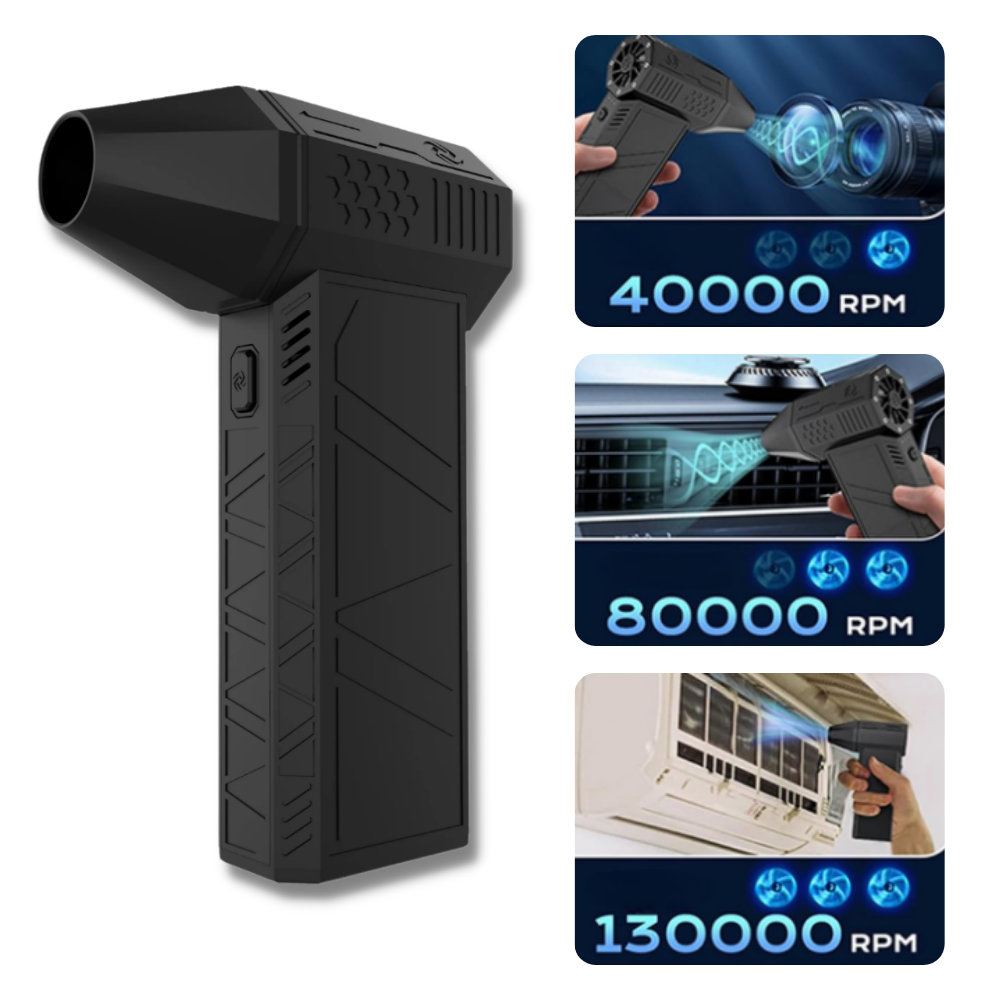 Our turbo fan is designed with a 3-gear adjustable speed setting, offering versatile options to suit various needs. With speeds of 40,000rpm, 80,000rpm, and an impressive 130,000rpm, you can easily select the appropriate level of airflow for different tasks. Whether you need a gentle breeze for light dusting, a moderate flow for cooling, or a powerful blast for heavy-duty applications, this fan has you covered. The flexibility to switch between these speeds ensures that you can efficiently handle anything from delicate electronics to robust cleaning or cooling jobs, making it an indispensable tool for both professional and personal use.