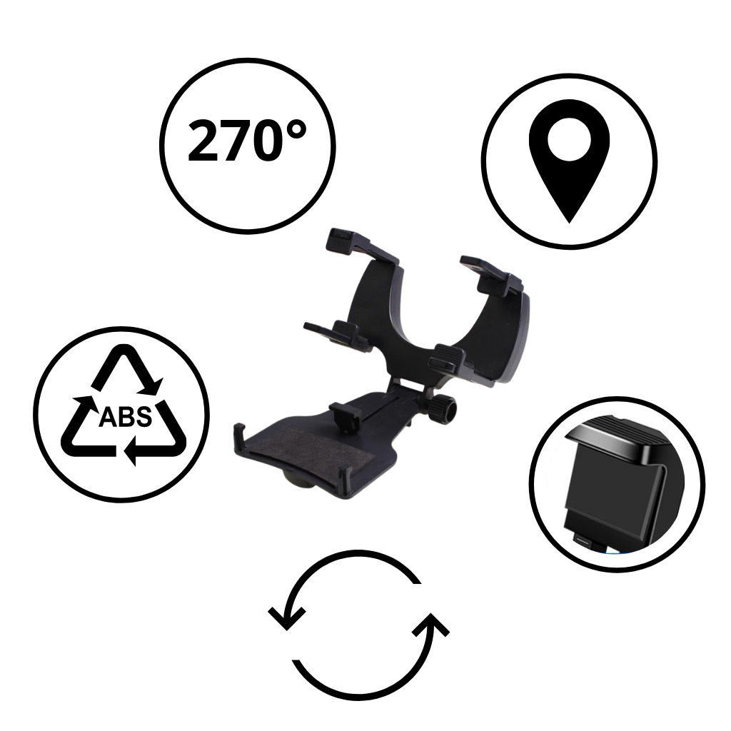 Car Rearview Mirror Phone Holder - 270° Rotation -