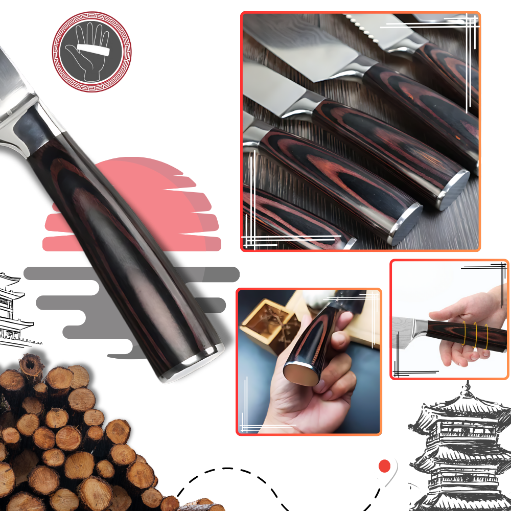 Forest Wood Japanese Knife - 10 set knives  - Ozerty