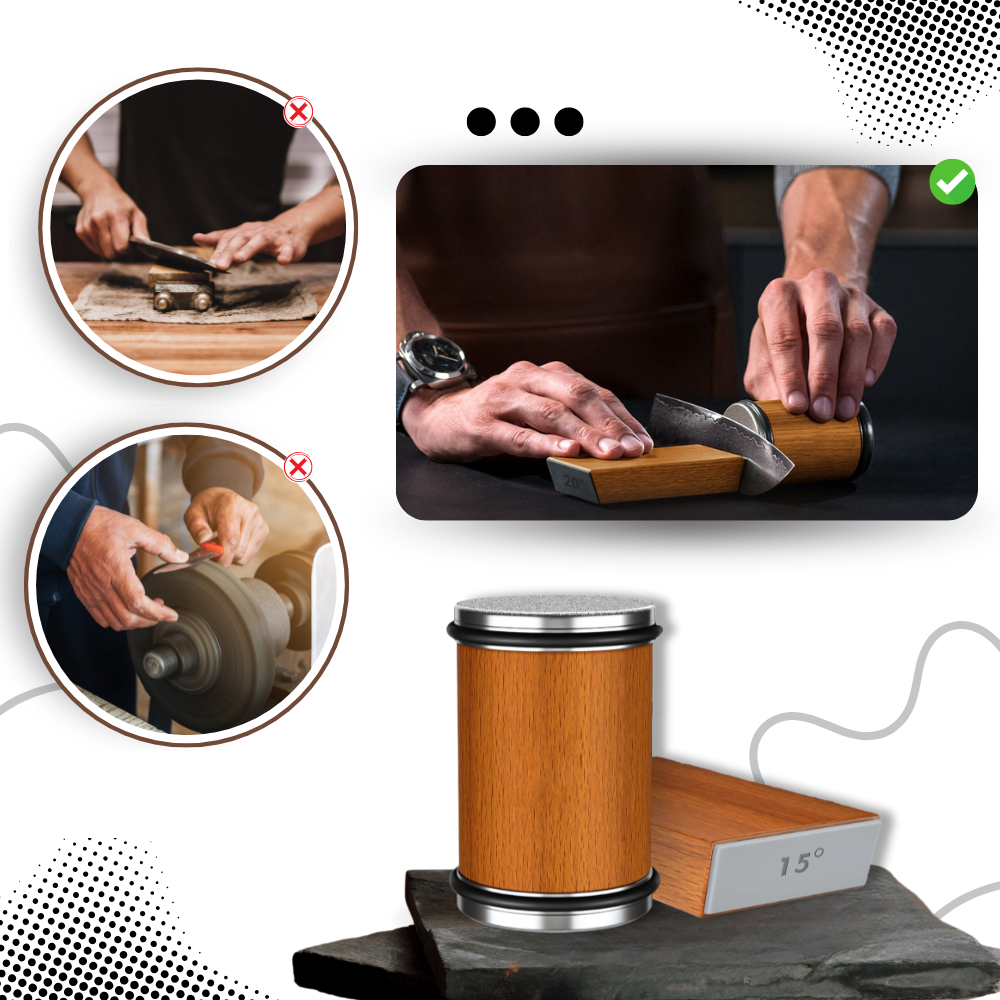 Frustrated with sharpeners that feel clumsy, uneven, or inconsistent? The KnifeGlide Precision Sharpener's rolling sharpening mechanism reimagines knife care with smooth, controlled motion and professional-grade results. At its core lies a 46 μm diamond grinding disc, designed for high-efficiency material removal. This disc rotates as it glides along the knife’s edge, restoring sharpness with fewer passes and full-edge coverage—from heel to tip. What makes the roll so effortless? Inside the solid wood roller grip, a sealed, ball-bearing axis reduces internal friction to near-zero, enabling a glide-like motion that’s both silent and fluid. Supporting this movement are roller wheels fitted with oval silicone rings, which deliver stable traction and controlled contact during sharpening. The result is evenly distributed pressure that prevents over-sharpening, protects blade geometry, and requires minimal effort from the user.