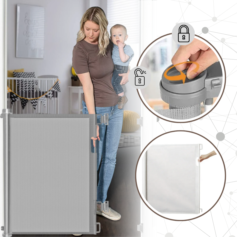 Retractable Sturdy Mesh Pet & Baby Gate - Versatility for Every Household - Ozerty